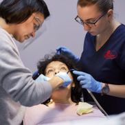 Принцип действия аналогичен ультразвуковой процедуре. Поверхность зубов покрывают отбеливающим гелем и активируют его с помощью лазерного излучения. Под действием лазера компоненты геля расщепляют пигментные частицы и делают улыбку белоснежной. Щадящая и безопасная процедура гарантирует отсутствие боли, кровоточивости или повреждения десен. Результат сохраняется длительно, не менее 1,5- 2 лет при соблюдении рекомендаций по гигиеническому уходу.